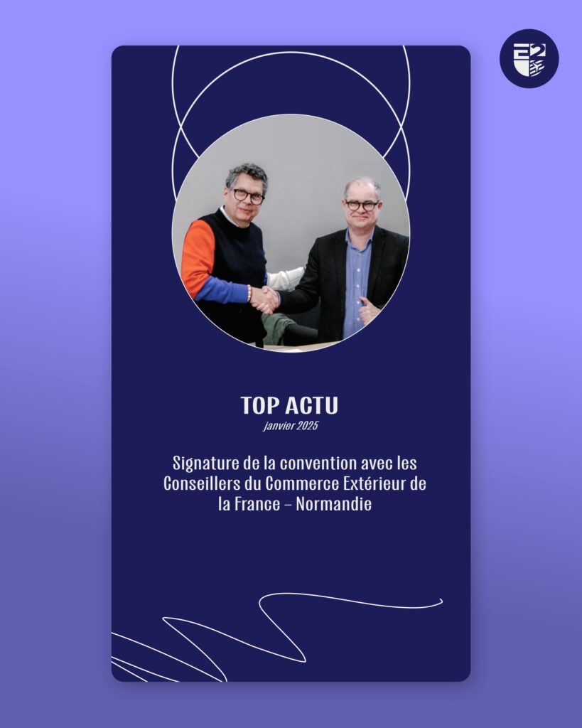Top actu de l’année marqué par la signature de la convention avec Les Conseillers du Commerce Extérieur de la France Normandie, un partenariat clé pour enrichir nos formations et accompagner nos étudiants vers l’international.